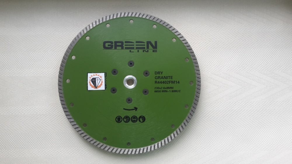 Алмазный отрезной круг 230 Турбо гранит с фланцем "Green Line"